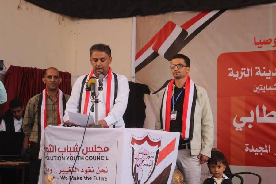 وألقى صلاح الاكحلي كلمة مجلس شباب الثورة أشار فيها إلى أن المناسبة تأتي في ظل ظروف مؤلمة حيث مازال يعاني الوطن من مخلفات الإمامة الكهنوتية السلالية الحوثية الانقلابية التي عادت بثوبها الجديد كواحدة من ادوات الاستعمار وجبهاته العميقة لتدمير وتمزيق وطننا اليمني الكبير ولطمس هويته وتمزيق جغرافيته وتاريخه ونضالات أبنائه في الشمال والمناطق الجنوبية بصفة خاصة.